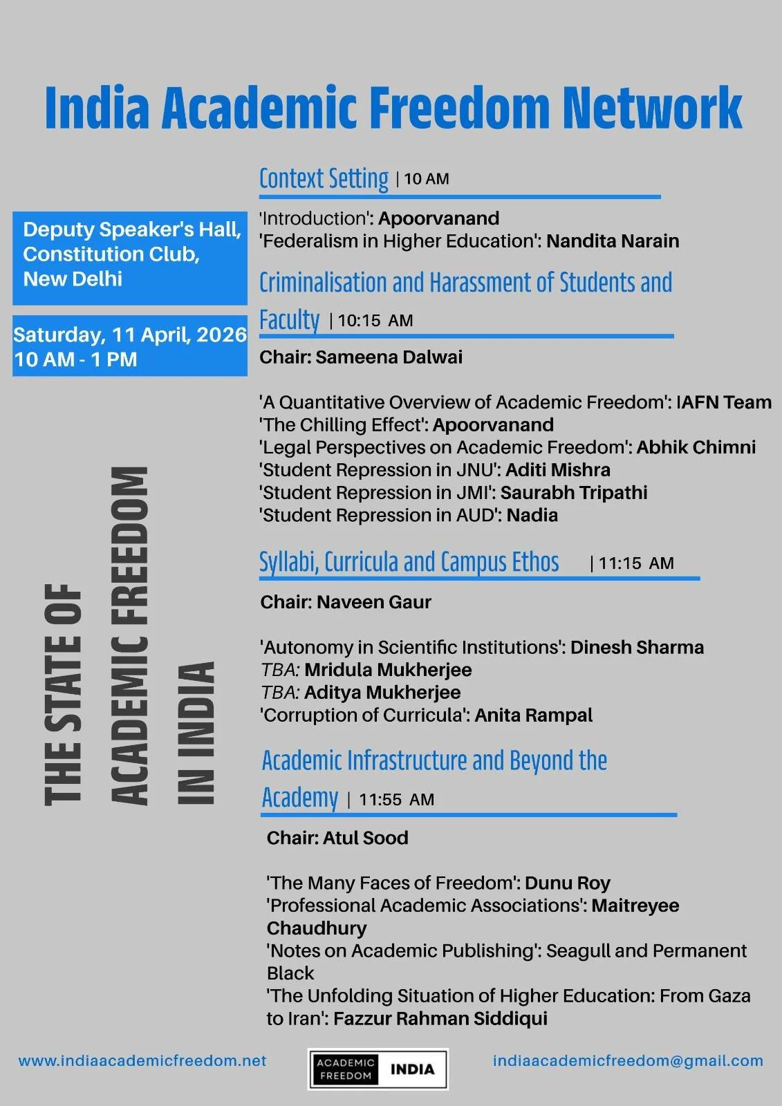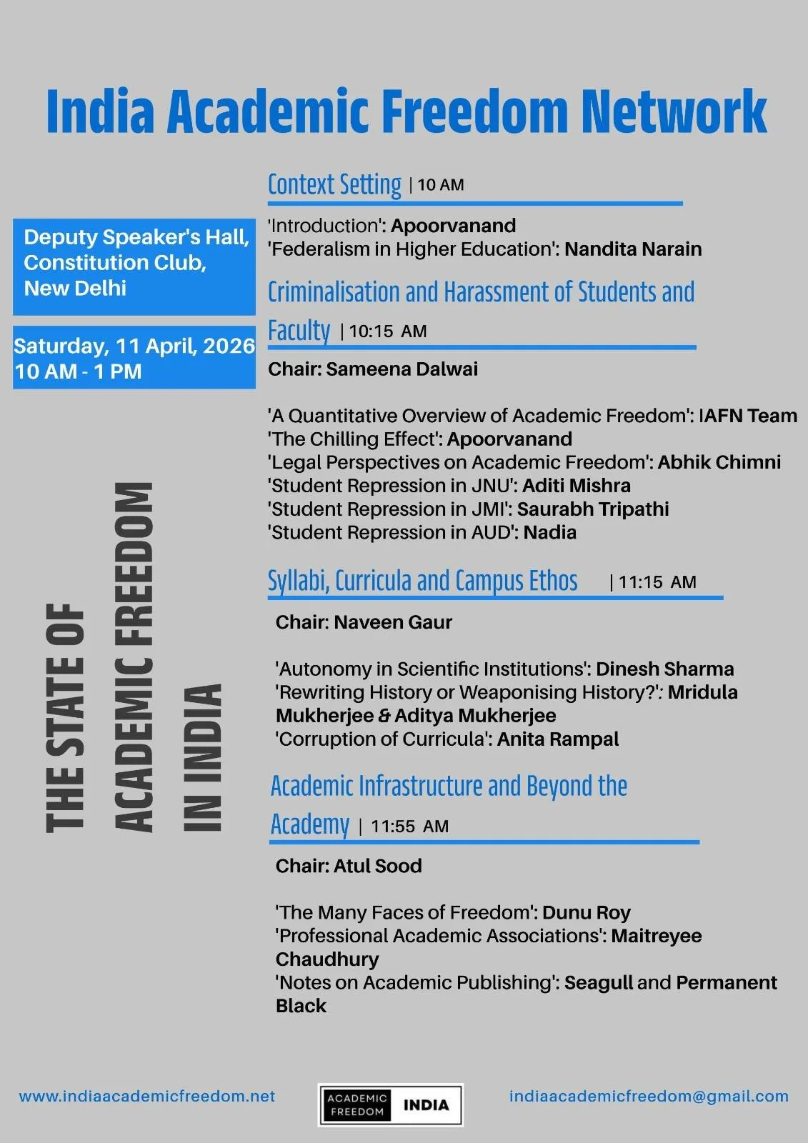 India Academic Freedom Network is a platform for students, faculty and all those interested in strengthening the values of academic freedom in Indian educational institutions.