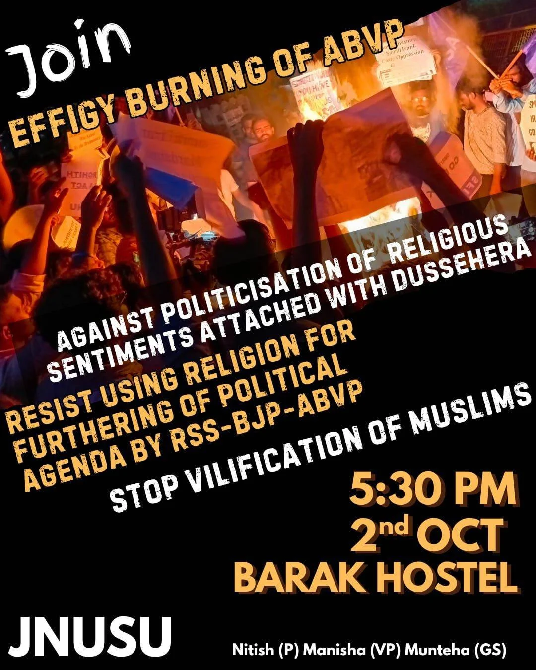 ‘Burn the Contemporary Ravans’ Vijayadashami Poster at JNU