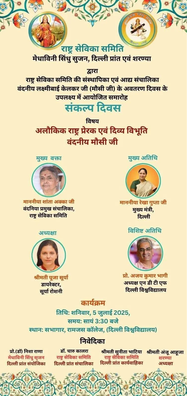 Rashtra Sevika Samiti Event held at Ramjas College on the 5th of July 2025. Chief Minister of Delhi, Rekha Gupta in attendance.