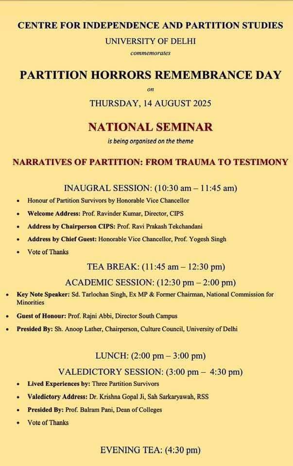 University of Delhi Seminar on Partition Horrors Remembrance Day